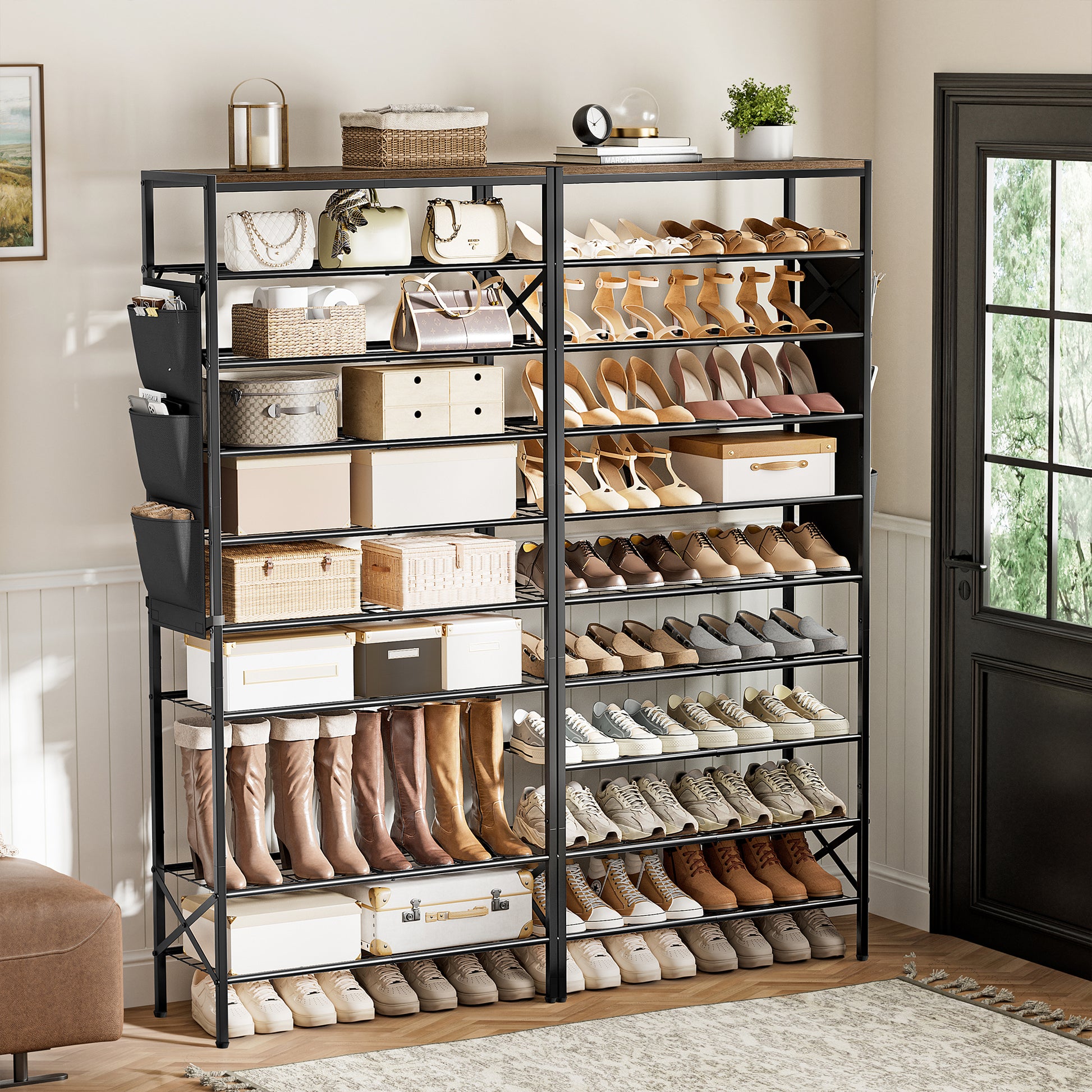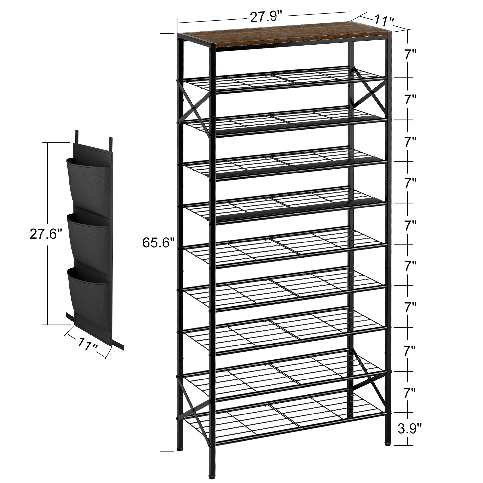 BGTREND 10-Tier Metal Shoe Rack Organizer with Wooden Top, 30-40 Pairs Shoe Storage Shelf for Entryway Hallway (65.67” Tall, Brown)