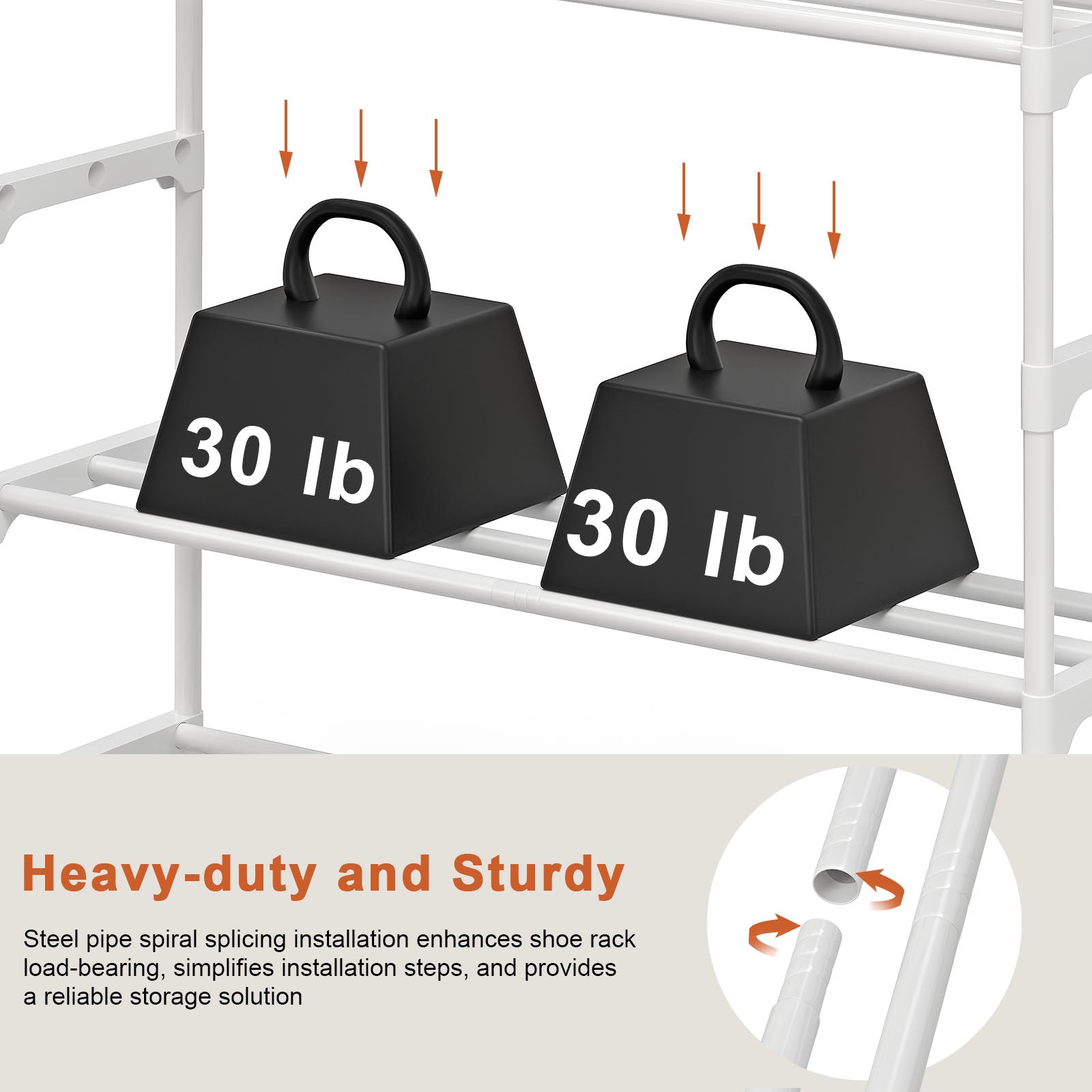 [Multiple Applications]: Featuring a compact profile, you can easily set this simple shoe rack in the entryway, hallway, living room, bedroom, or garage. This metal storage shelf is not only for shoes, you can also use it to hold bags, newspapers, toolboxes, and more!