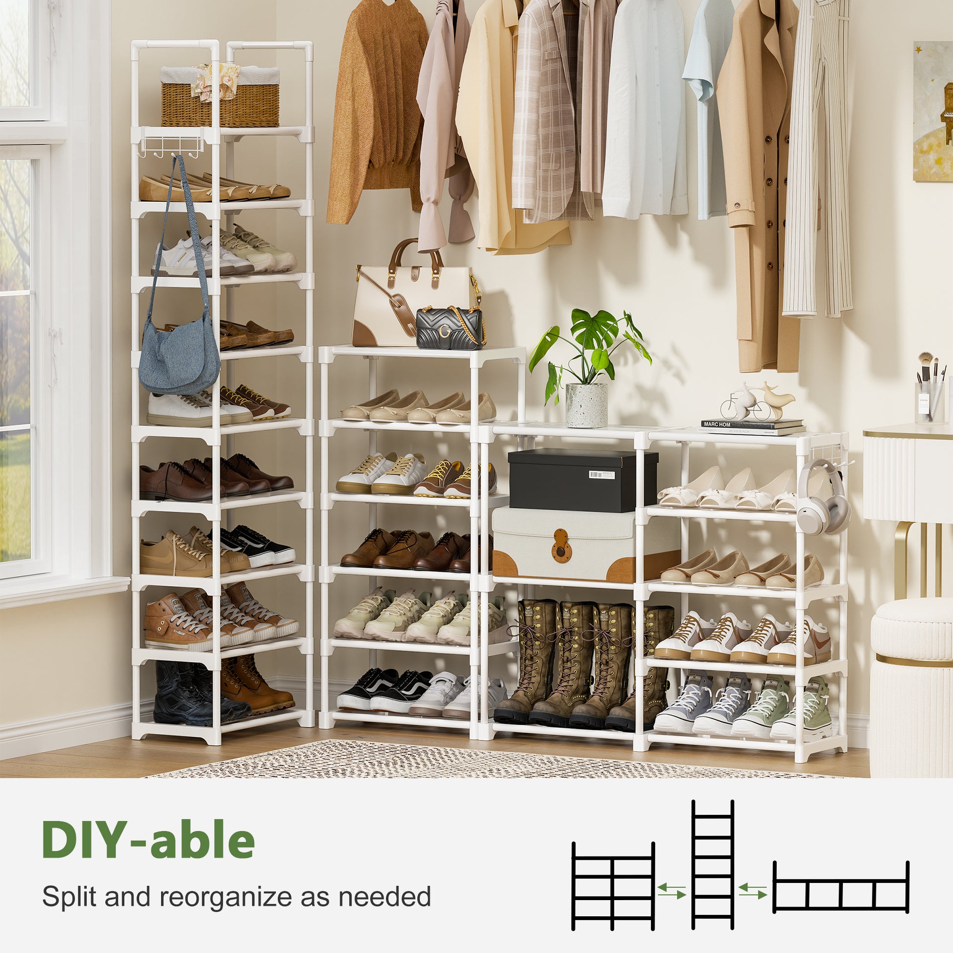 - [Easy to Assemble & DIY]: This can be time-consuming because of the amount of material, but it's very easy to understand how it's assembled, you can assemble this big shoe rack easily by following the instructions included. You can also assemble it on your own to your preference, combining the materials into a slim/narrow shoe rack or splitting it into multiple smaller shelves.