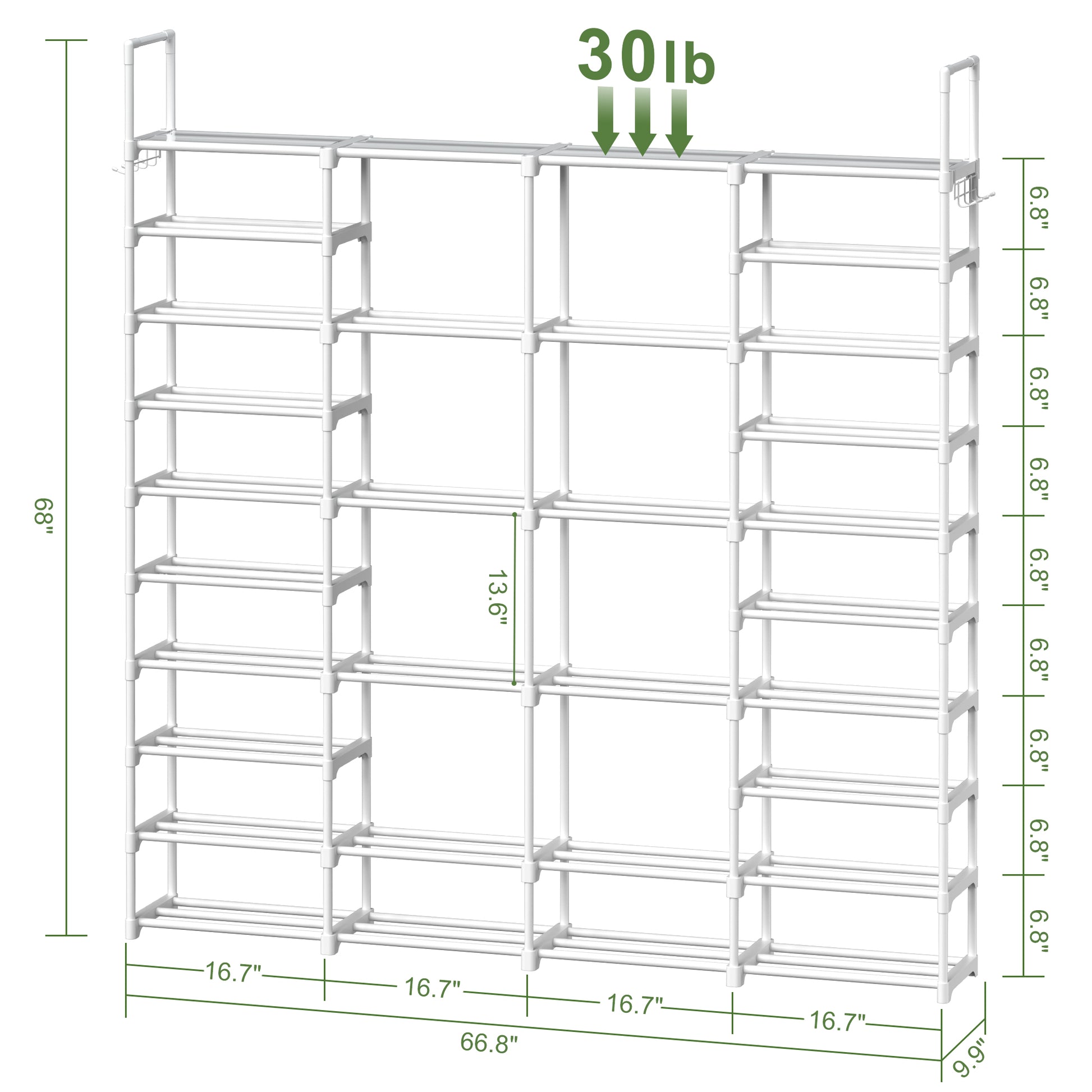- [Large Capacity Shoe Organizer]: The fully assembled size of this shoe holder is 66.8”W x 9.9”D x 68”H. 10 Tiers provide more space to extend upwards and can store up to 65-70 pairs of shoes, making your space more tidy and organized.