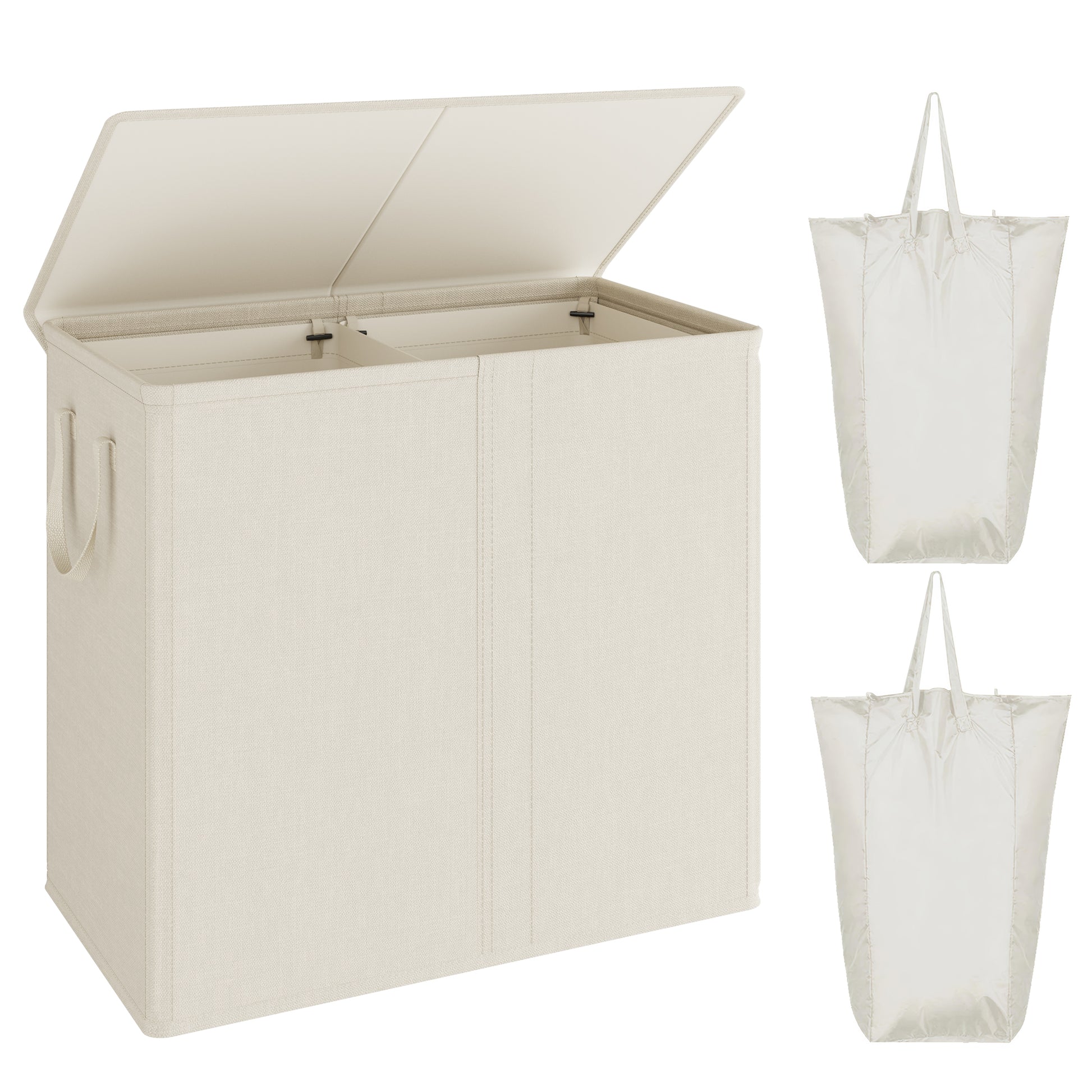 BGTREND Double Laundry Hamper with Lid 110L Laundry Basket with Removable Liner Bags Collapsible Laundry Sorter Dirty Clothes Hamper (Beige)