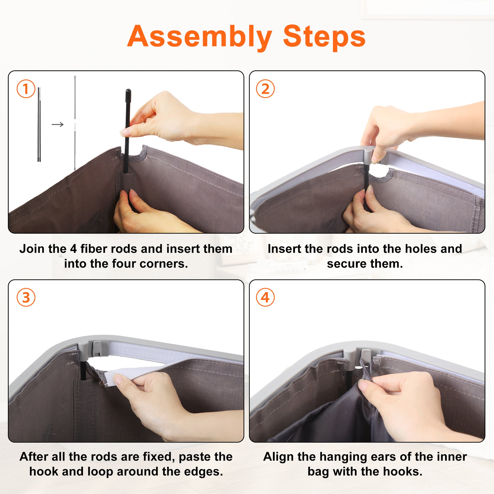 - 【Sturdy and Stable】: Made from high-quality cationic cloth, this laundry bin is tear-resistant and sturdy. The four support rods with a plastic frame make it even more robust, capable of supporting up to 26.5 lbs / 12 kg without collapsing or deforming over time.