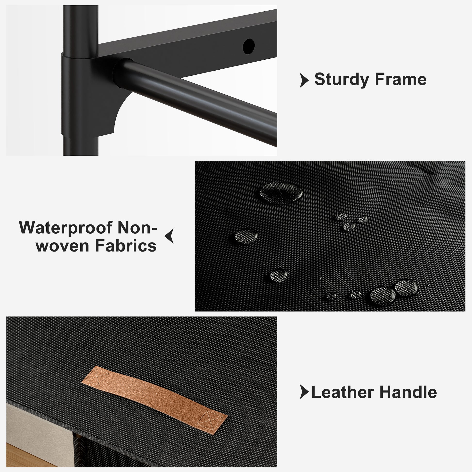 - 【Sturdy Structure】: This shoe rack is made of high-quality thick non-woven fabric, equipped with a metal frame and plastic connectors. It is waterproof and easy to clean, and is durable and sturdy.