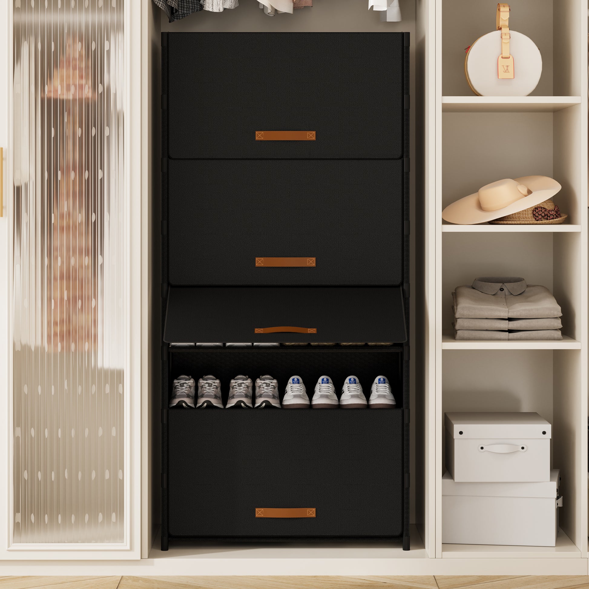 With the BGTREND non-woven fabric shoe rack, you can easily organize and store your shoes. Its sturdy frame is highly durable. The leather handles and the 180° flip-up cover make it convenient for you to access the shoes while effectively preventing dust from entering. The detachable shelves can accommodate shoes of various heights, from sandals to boots. This shoe rack is an ideal choice for clearing out clutter in the entrance, closet, or any room in your home.