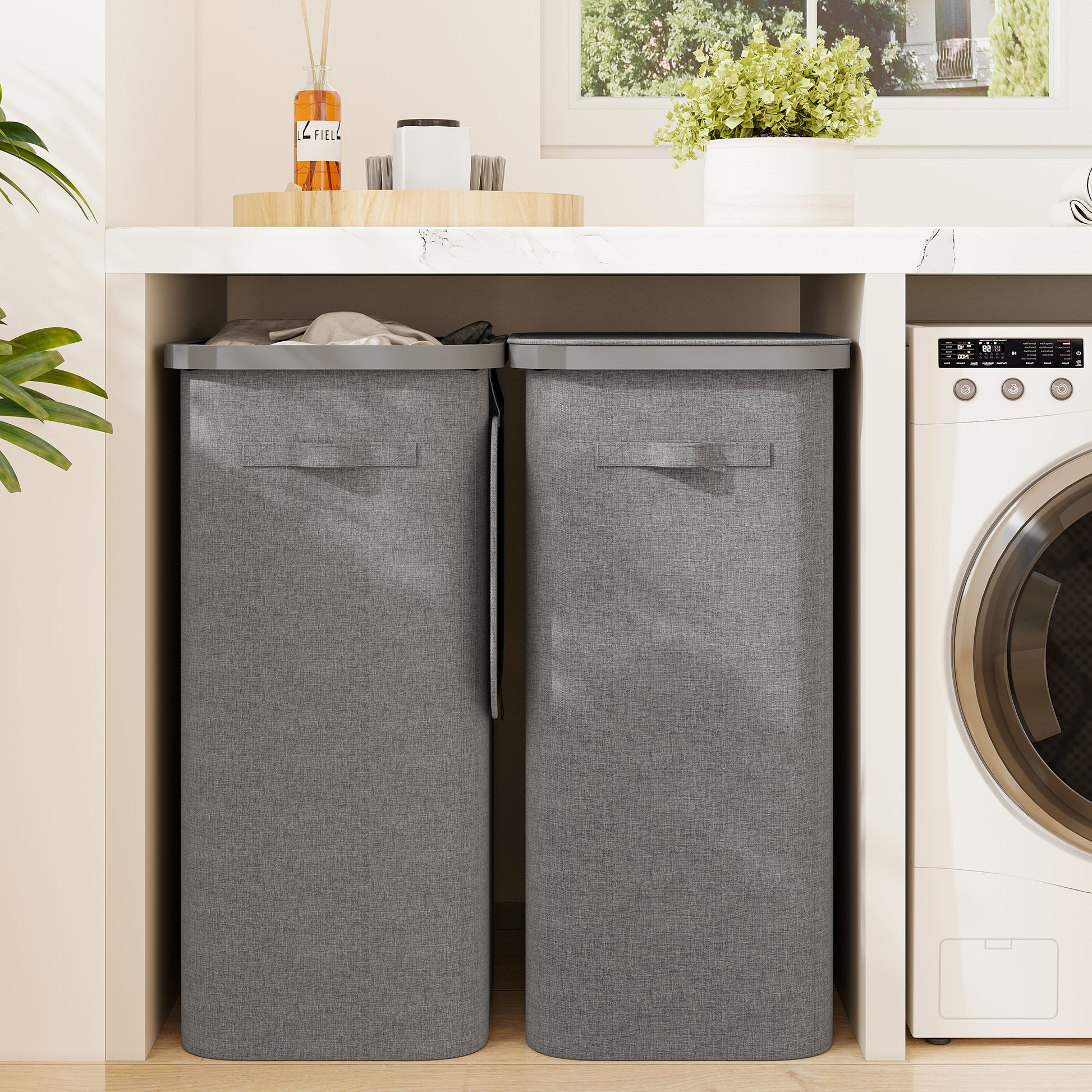 BGTREND 2PCS Slim Laundry Hamper with Lid 110L Foldable Clothes Basket with Removable Mesh Bag & Handle for Closet Bathroom Bedroom (Gray)