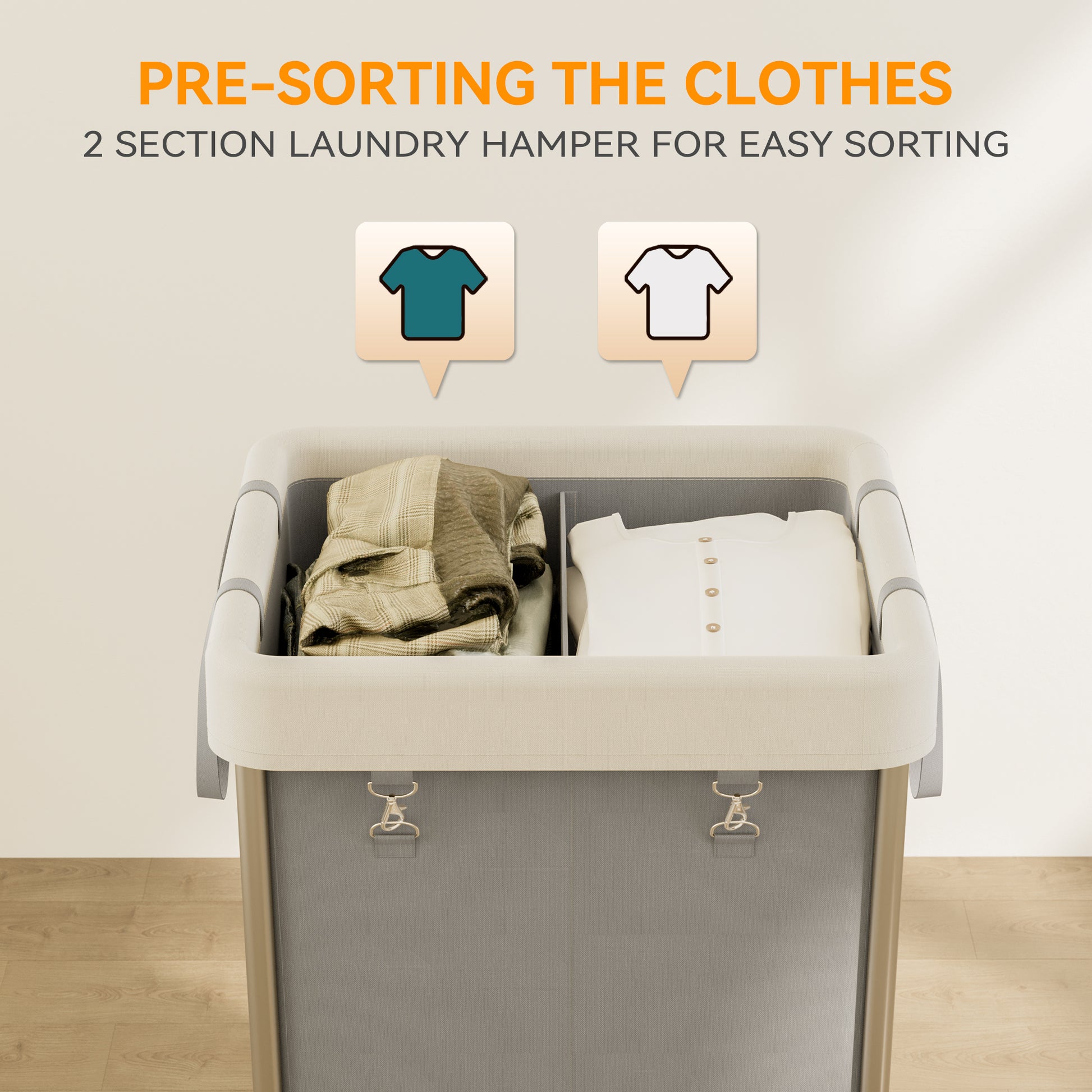 - 【Smart 2-Section Design】:The dual-compartment layout enables quick and efficient sorting—keep lights and darks separate or isolate wet from dry items. Streamline your laundry routine and stay organized with this intuitive sorting solution.