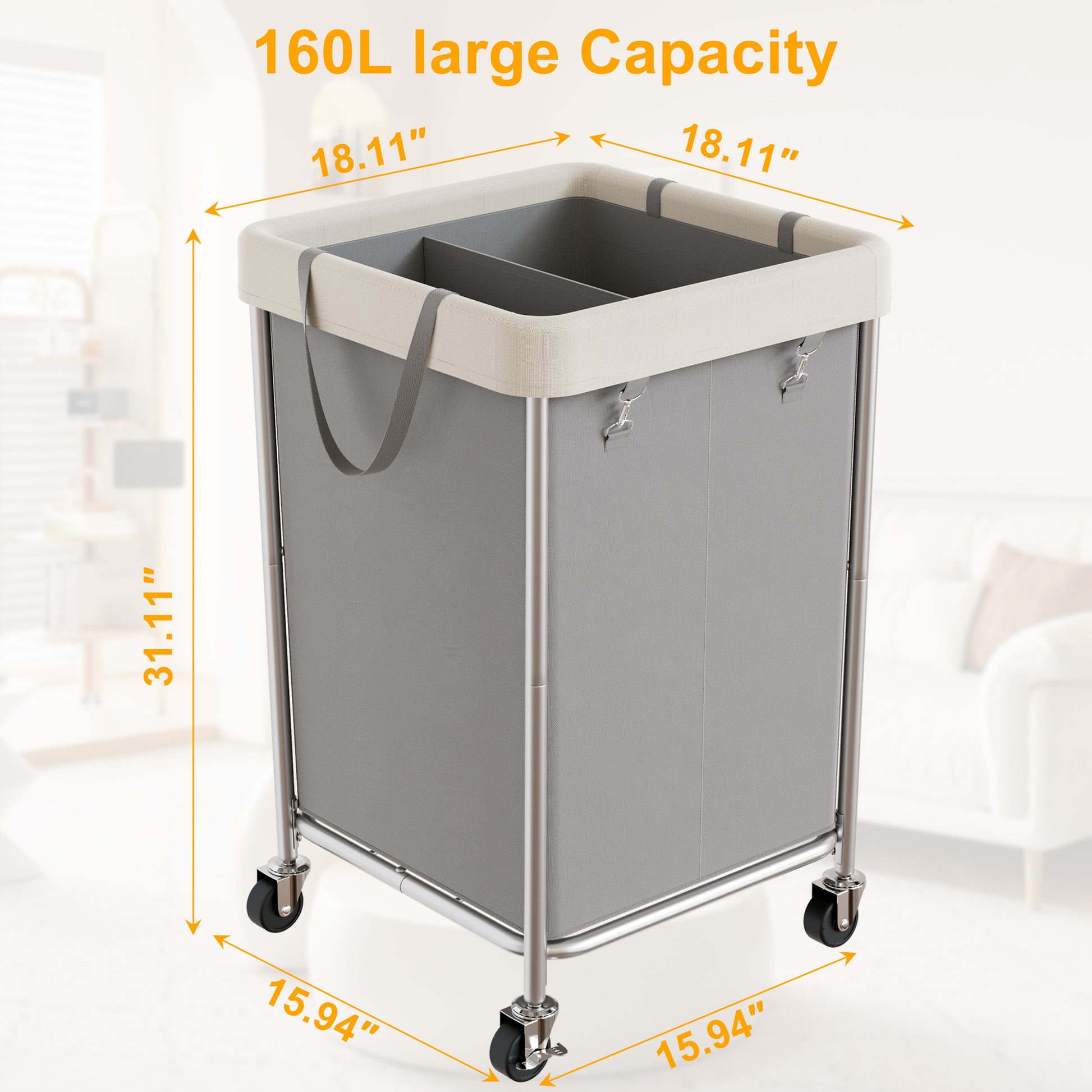 - 【 Large capacity】:This trolley has a capacity of 160 liters, which can easily handle a large number of laundry tasks - perfect for busy families, shared apartments or commercial use. It can hold several days' worth of laundry, reducing the frequency of trips to the washing machine.