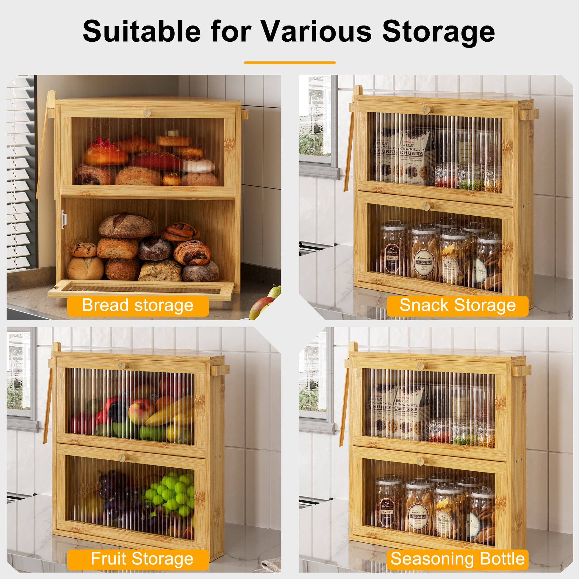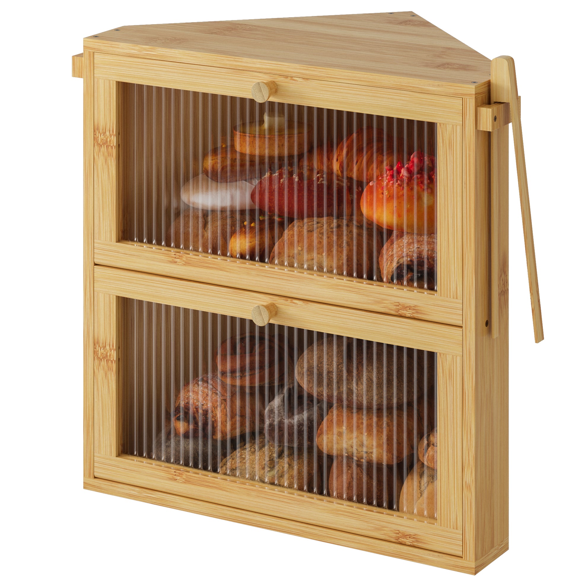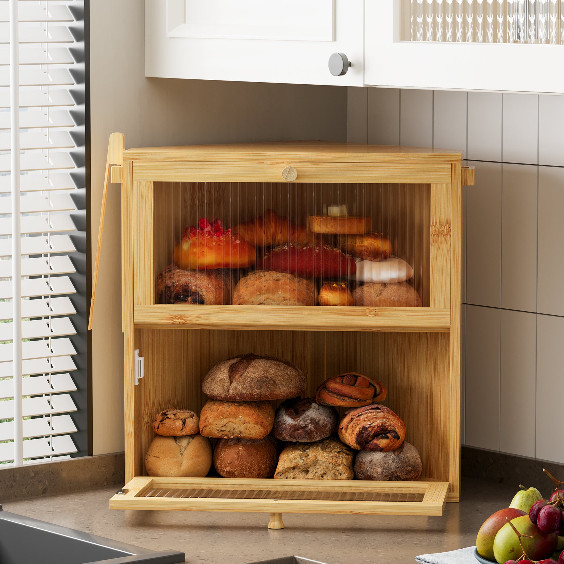 BGTREND Corner Bread Box for Kitchen Countertop, Large Double Layer Bread Storage Container for Homemade Bread, Black Bread Holder for Kitchen Counter, Under Cabinet Organizer (Natural, Extra Large)