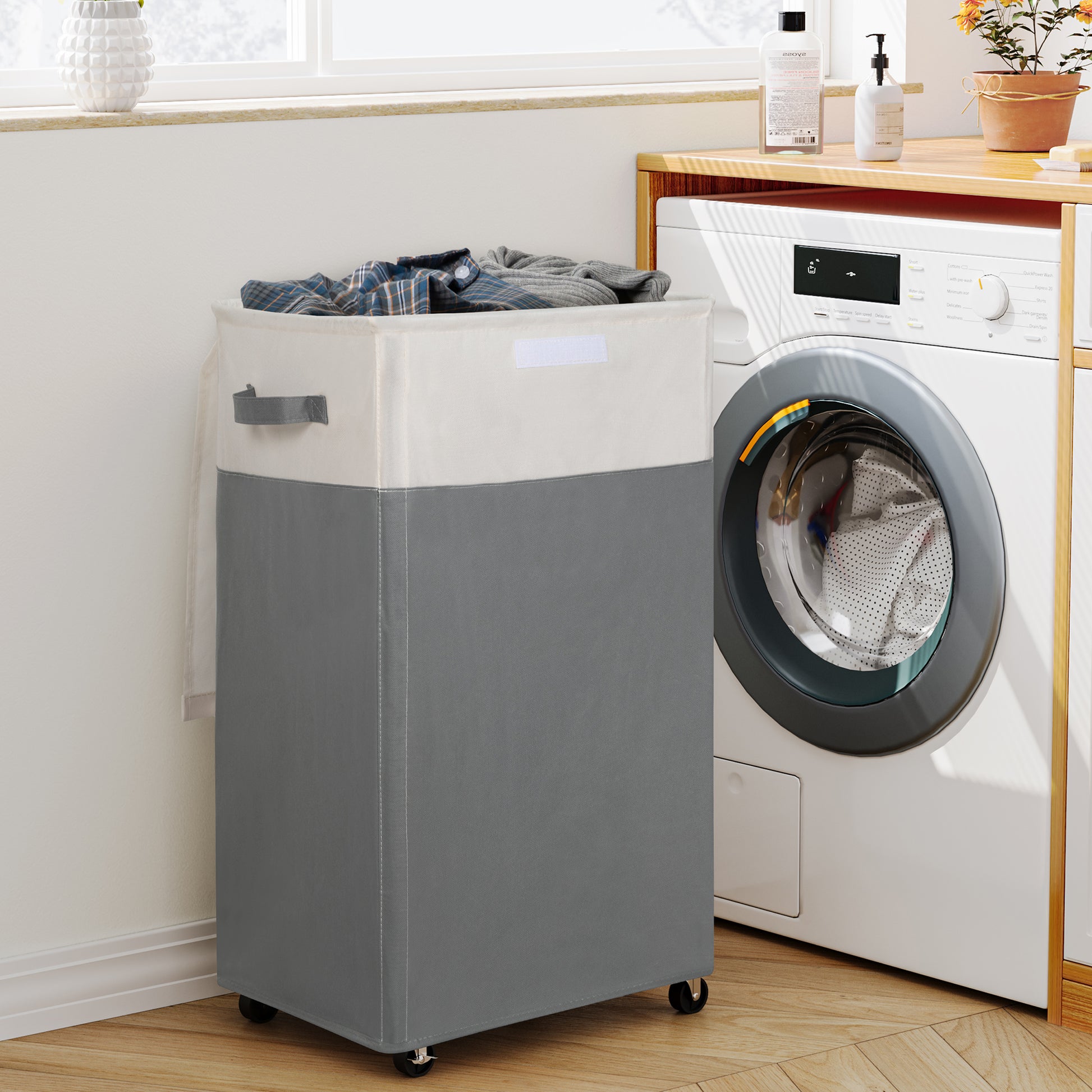 - [FlexibleWheels] The flexible wheels make this dirty clothes basket easy to move. It can slide smoothly on flat surfaces even when carrying heavy clothes, so you can push or pull it to the laundry room effortlessly. Two of the wheels can be locked manually to prevent the hamper from moving without notice;