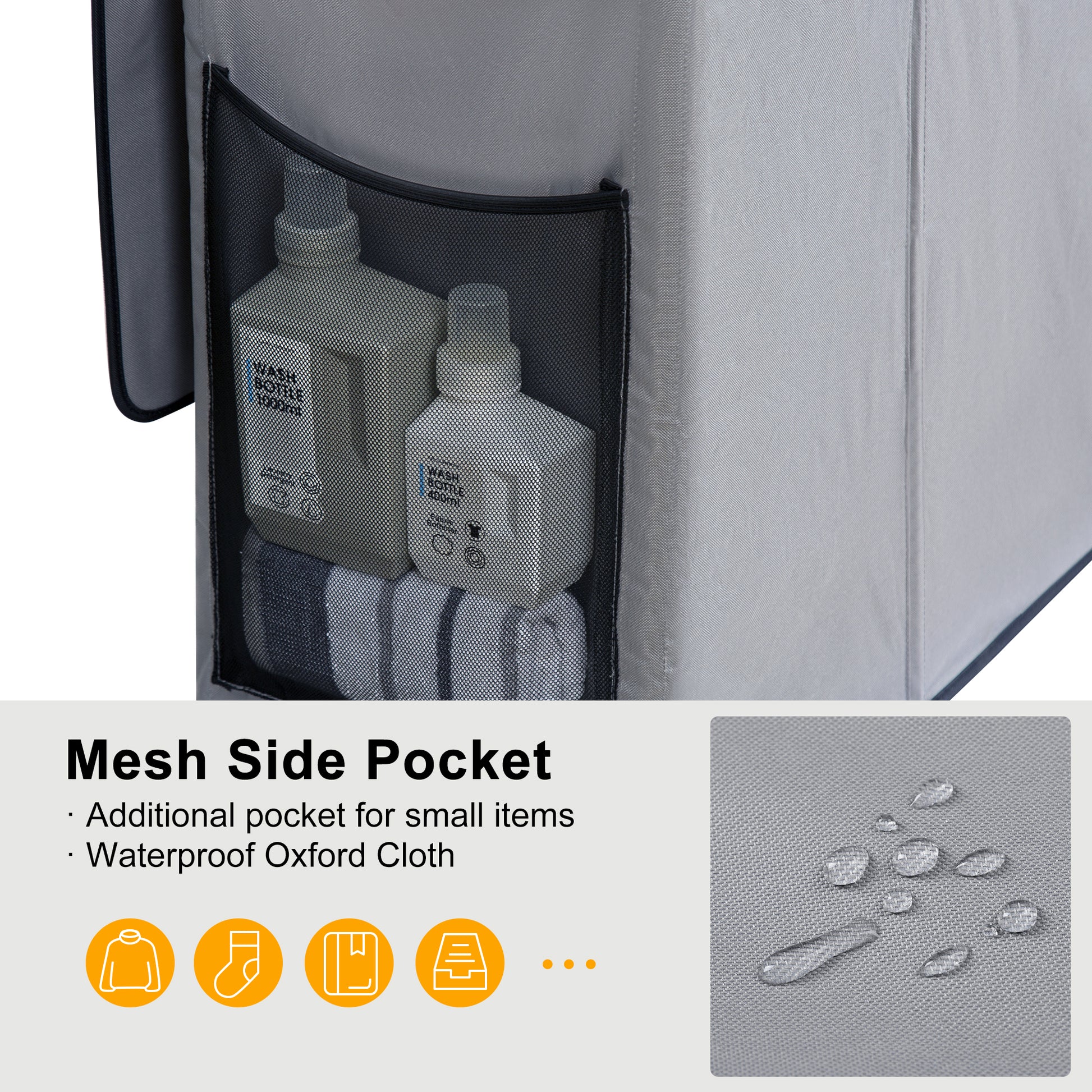 - [Side Mesh Pocket]The mesh pocket on the side of the dirty clothes storage hamper can be used to store smaller garments, such as socks and underwear, so that they don't get mixed up with other large-piece clothes. It can also be used to store cleaning products such as laundry detergent;