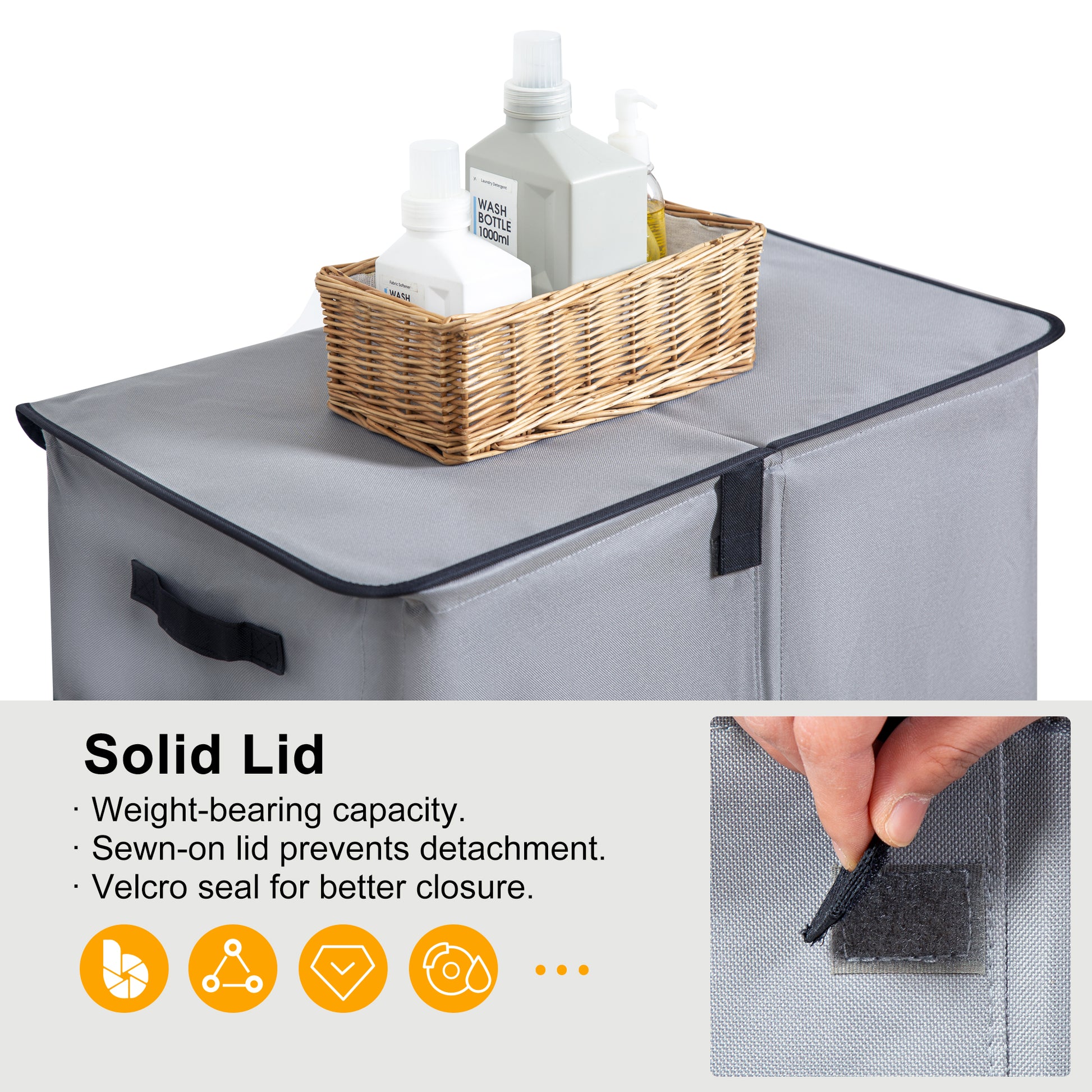 - [Sturdy Lid & Bag]The fixed lid is lined with a layer of cardboard, thus it is not easily deformed and can also bear weight. Flip the lid down to hide the smell and make your space look cleaner and nicer. The liner bags are made of high-quality stitching process, it can also be used as a clothing storage bag;