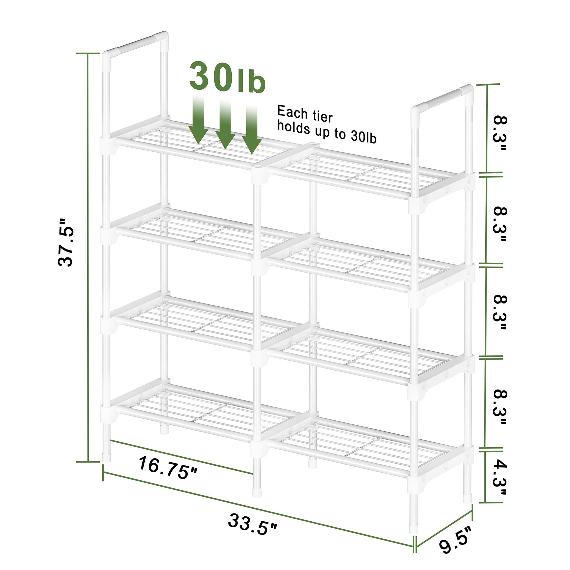 BGTREND 4 Tiers Shoe Rack 2 Columns Shoe Storage Organizer 16-20 Pairs Joinable Utility Metal Shoe Shelf for Entryway Hallway Closet (37.4 inches, White)